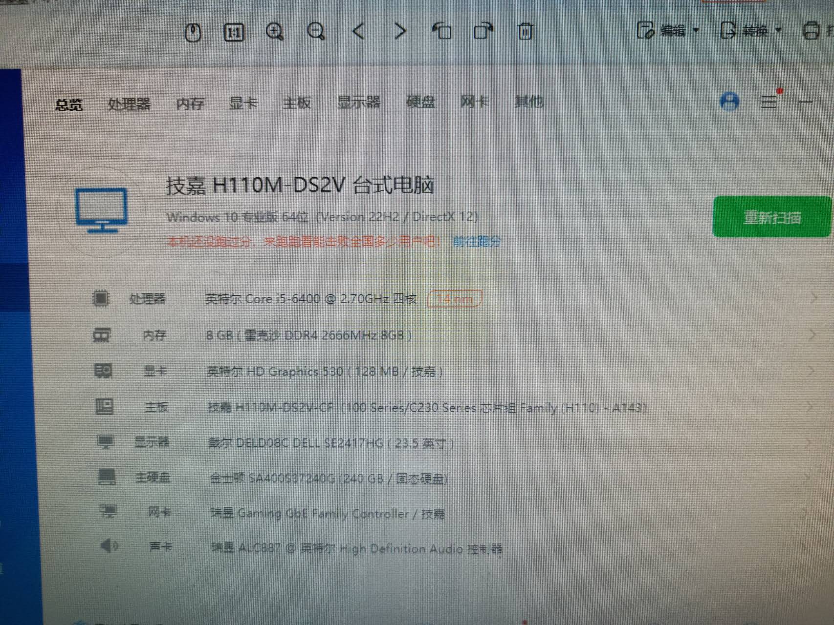 i5 6400四核处理器8gddr4 2666 240g固态